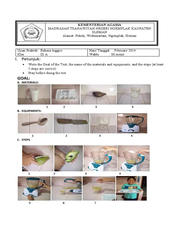 Kisi dan naskah soal ujian bahasa inggris praktik untuk siswa sd kelas 6.